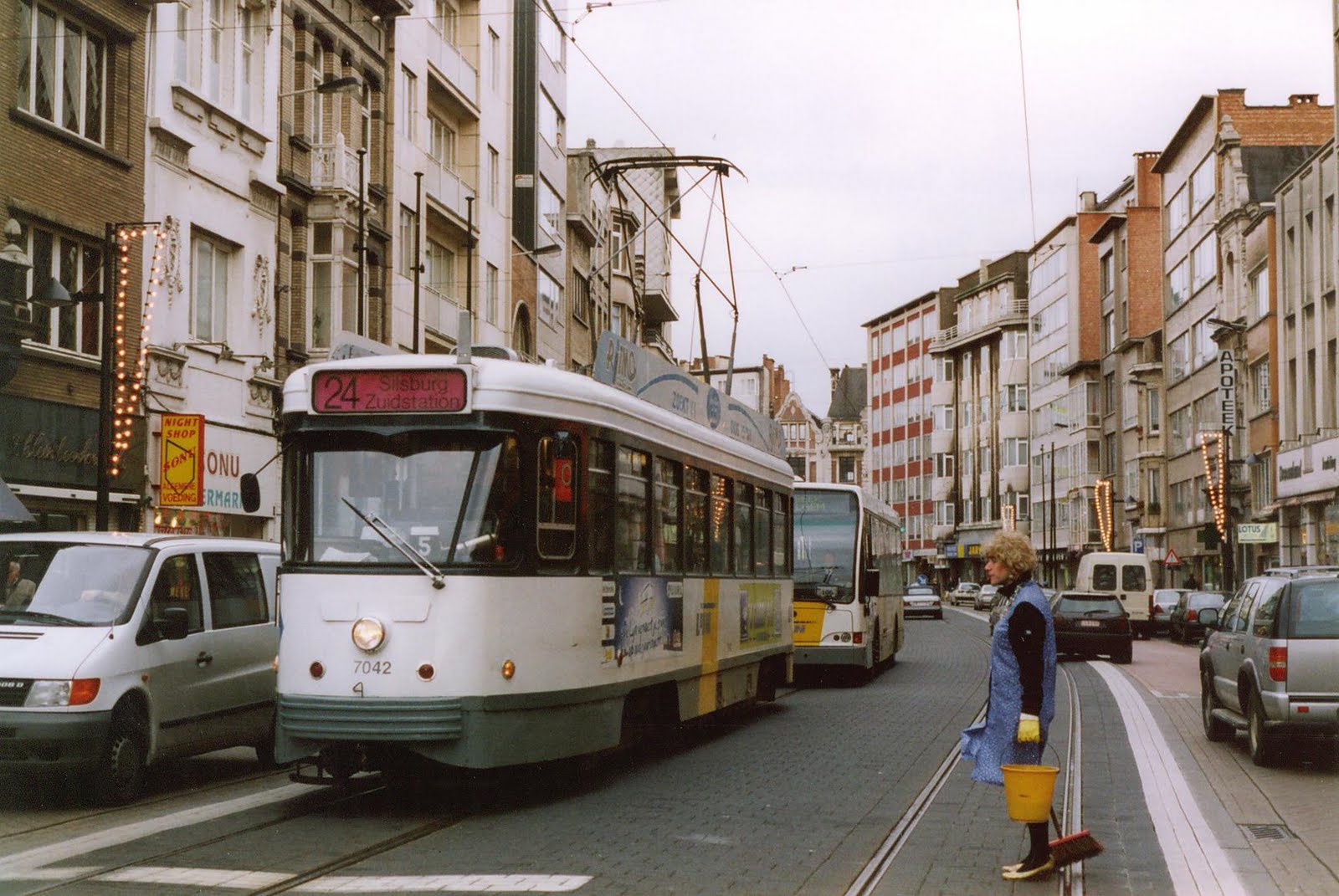 -Gedeelde auto- en trambaan (stuk net voor Astridplein (stadinwaarts)). -- -Steeds bochten en schommelingen, er loopt bijna geen enkel stuk spoor meer recht.