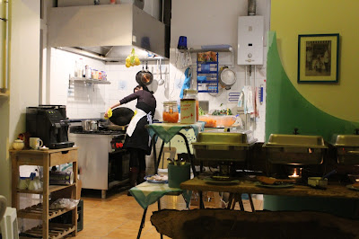 Ik ben vanavond een hapje gaan eten in De Belly. Dat is op de spie Borsbeekstraat/Gijelsstraat, daar waar vroeger de afhaalchinees was. Daar zit nu een soort kunstenaarscollectief, en ze doen iedere woensdag een volkskeuken. Van hun Facebook: